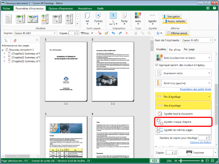 (Agrafer) dans le ruban et sélectionner ensuite [Agrafer chaque chapitre].
