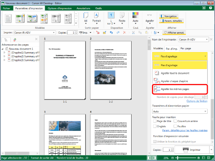 (Agrafer) dans le ruban et sélectionner ensuite [Agrafer les mêmes pages].