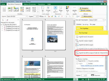(Agrafer) dans le ruban et sélectionner ensuite [Agrafer les mêmes pages à l'aide de la fonction Eco].