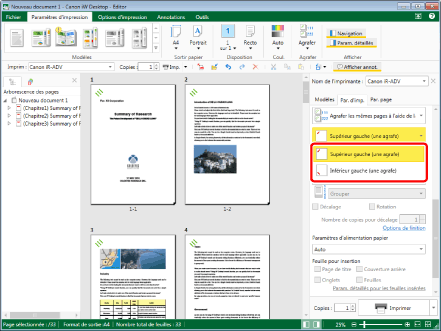 Cette fonction ne peut être utilisée que lors de la sélection d'une imprimante Canon lorsque la case [Utiliser param. imp. Editor] est cochée dans l'onglet [Par. d'imp.] de la Fenêtre Détails, de la commande du ruban ou du bouton d'outil.
