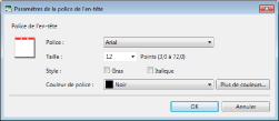 Les mêmes paramètres de police sont utilisés dans [Insérer en-tête/PdP dans pages à imprimer] et dans [Insérer en-tête/PdP ds pages d'originaux].