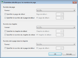 Permet de définir les paramètres avancés de numérotation des pages dans le chapitre.