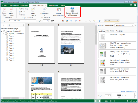 Un écran Mode Paramètres d'impression de Publipostage ne permet de modifier qu'un seul document.
