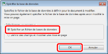 Lors de l'ouverture d'un document IWB dans lequel sont stockées des informations de connexion à une base de données, le lancement du Mode Paramètres d'impression de Publipostage entraîne la connexion automatique à la base de données et la mise à jour des données de Publipostage.
