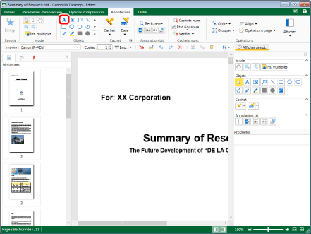 Pour modifier les propriétés de l'ensemble du texte, sélectionnez l'annotation. Pour plus d'informations sur la façon de sélectionner une annotation, voir la section suivante.
