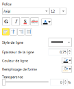 Il est également possible de définir les propriétés à partir des commandes de ruban ou des boutons de barre d'outils. Pour plus d'informations sur ces derniers, consulter la section suivante.
