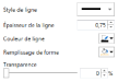 Définir l'épaisseur de ligne. Il est possible de spécifier une épaisseur de ligne comprise entre 0,25 point et 12,00 points. L'épaisseur de ligne peut également être définie en utilisant le sélecteur