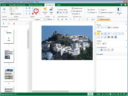 Cette opération peut également être effectuée avec les boutons d'outils de la barre d'outils. Si les boutons d'outils ne sont pas affichés sur la barre d'outils de Desktop Editor, consulter les rubriques suivantes pour les afficher.