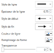 Définir l'épaisseur de ligne. Il est possible de spécifier une épaisseur de ligne comprise entre 0,25 point et 12,00 points. L'épaisseur de ligne peut également être définie en utilisant le sélecteur