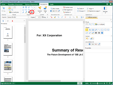 Cette opération peut également être effectuée avec les boutons d'outils de la barre d'outils. Si les boutons d'outils ne sont pas affichés sur la barre d'outils de Desktop Editor, consulter les rubriques suivantes pour les afficher.