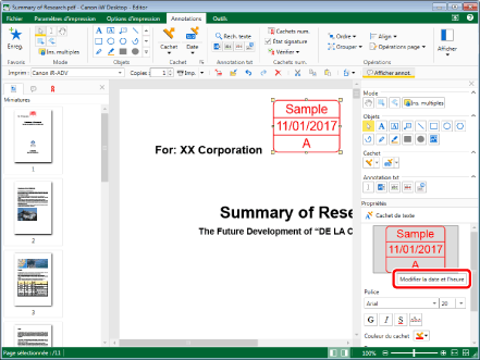 Saisir la date à insérer dans le cachet. Cliquer sur