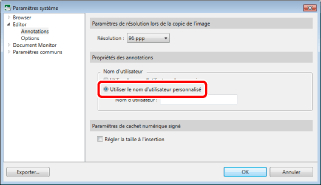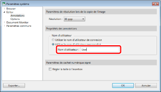 [Paramètres système] > [Editor] > [Annotations] > [Nom d'utilisateur]