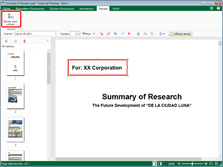 Cette opération peut également être effectuée avec les boutons d'outils de la barre d'outils. Si les boutons d'outils ne sont pas affichés sur la barre d'outils de Desktop Editor, consulter les rubriques suivantes pour les afficher.