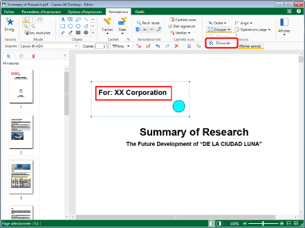 Il se peut que certaines annotations regroupées par un moyen autre que Desktop Editor ne puissent pas être dissociées.