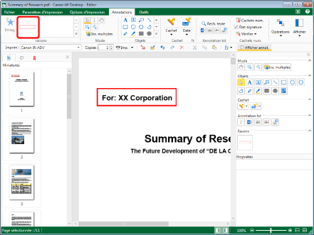 Lors de l'insertion d'une annotation à l'aide du bouton Favoris, l'annotation est insérée à l'emplacement qu'elle occupait lors de l'enregistrement, de sorte qu'il n'est pas possible de spécifier l'emplacement d'insertion de l'annotation. L'annotation doit être insérée avant de pouvoir régler sa position d'insertion.