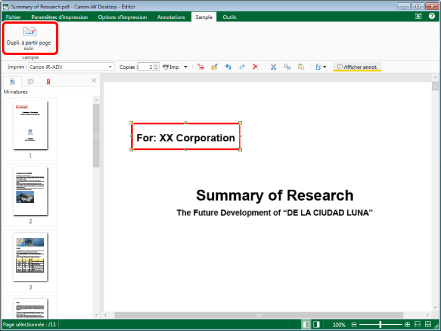 Sélectionner l'annotation à insérer sur l'ensemble des pages suivantes dans la Fenêtre de travail.