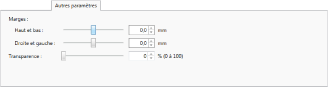 La position du curseur et la valeur numérique indiquent le degré de transparence du cachet. Pour modifier le degré de transparence, déplacez le curseur vers la gauche ou la droite, ou saisissez une valeur numérique. Vous pouvez également utiliser le sélecteur