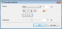 La position du curseur et la valeur numérique indiquent l'espacement du texte. Pour modifier l'espacement, déplacez le curseur vers la gauche ou la droite, ou saisissez une valeur numérique comprise entre -50 et 50 points. Vous pouvez également utiliser le sélecteur