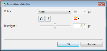 La position du curseur et la valeur numérique indiquent l'espacement du texte. Pour modifier l'espacement, déplacez le curseur vers la gauche ou la droite, ou saisissez une valeur numérique comprise entre -50 et 50 points. Vous pouvez également utiliser le sélecteur