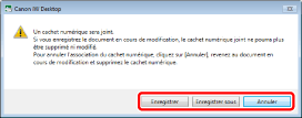 Si aucune information de date n'est insérée dans le cachet numérique, l'option [Modifier la date et l'heure] est désactivée.