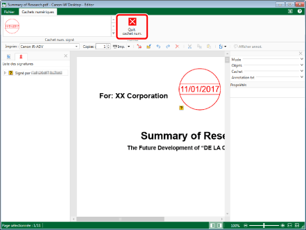 Les cachets numériques peuvent être vérifiés. Pour plus d'informations sur la vérification des cachets numériques, consulter la rubrique suivante :