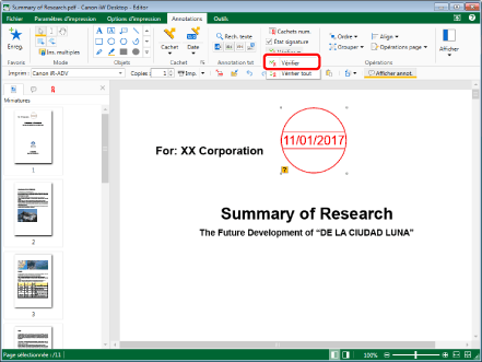 Lorsque des modifications telles que l'ajout d'une annotation ont été effectuées après l'ajout d'un cachet numérique (modifié).