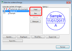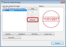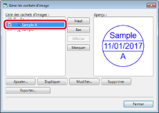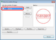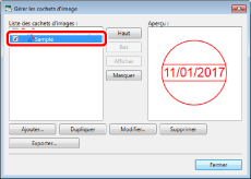 La liste des cachets numériques affichée dans le ruban contient uniquement les cachets d'image dont la case est cochée dans la boîte de dialogue [Liste des cachets d'images].