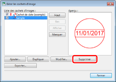 Vous ne pouvez pas supprimer les cachets d'image prédéfinis qui ont été automatiquement enregistrés durant l'installation.