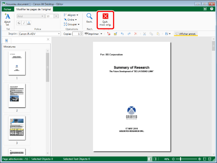 Un écran Mode Modifier les pages originales ne permet de modifier qu'un seul document.