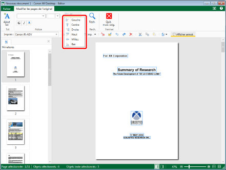 (Aligner) sur le ruban et sélectionner la direction pour aligner les positions.