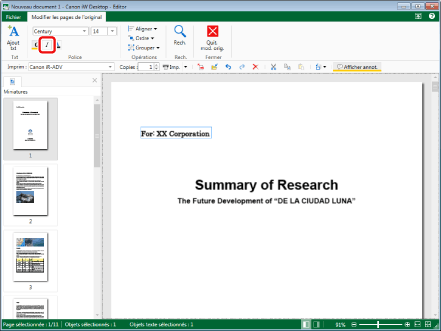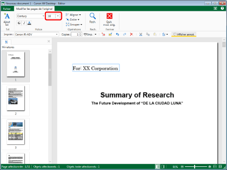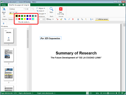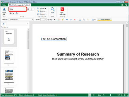 Les paramètres modifiés sont appliqués aux objets texte sélectionnés. Les paramètres initiaux sont conservés pour les éléments qui n'ont pas été modifiés.
