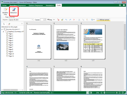 Les marquages de rédaction peuvent être sélectionnés en tant qu'objets en Mode Modifier les pages originales.