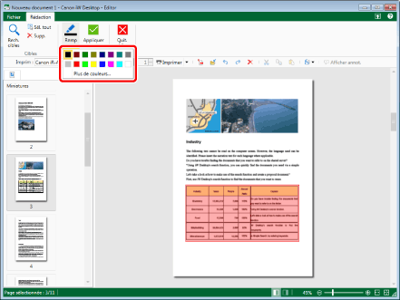 Il n'est pas possible de commencer à marquer une zone depuis l'extérieur de la zone de la page. Toutefois, il est possible de terminer le marquage d'une zone même depuis l'extérieur de la zone de la page. Lorsque l'utilisateur a fini de marquer une zone à l'extérieur de la zone de la page, cette zone est également surlignée en rouge clair.