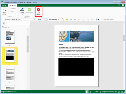 Cliquer sur [Annuler] pour arrêter le Mode Rédaction sans appliquer les rédactions.