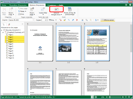 (Annuler) dans la barre d'outils pour rétablir le document tel qu'il était avant la réduction des marges.Les pages suivantes ne sont pas considérées comme des cibles lors de la réduction de marges de pages consécutives en mode d'édition de blocs, si bien que les objets de ces pages ne sont pas déplacés.