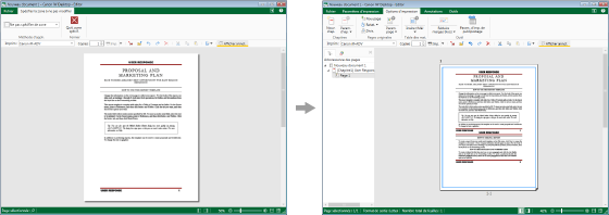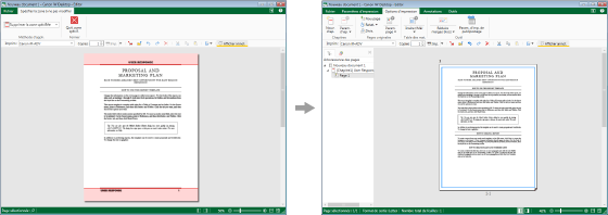 Les marges des pages suivantes ne sont pas réduites. En conséquence, les zones qui se trouvent dans la zone non éditable spécifiée ne sont pas supprimées lors de la sélection de [Supprimer la zone spécifiée]. Dans ce cas, supprimer manuellement les objets à supprimer.