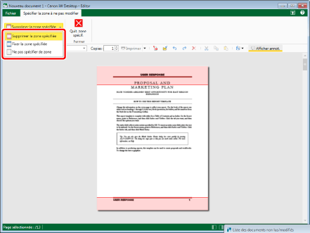 Même si une zone est définie comme une zone non éditable, lorsque cette zone ne contient aucun objet, le paramètre est automatiquement défini sur [Ne pas spécifier de zone].