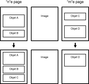 Lorsque la fonction de réduction des marges est exécutée, les marges sont réduites et les objets sont déplacés vers le haut sur chaque page. Par ailleurs, si le bas d'une page présente un espace, les objets de la page suivante sont déplacés dans cet espace.