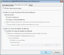 Cocher cette case pour afficher un message de réception dans Quick Printing Tool lors de la réception d'une télécopie.
