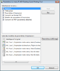 Cochez la case située en regard des éléments que vous voulez afficher dans le menu contextuel de Quick Printing Tool.