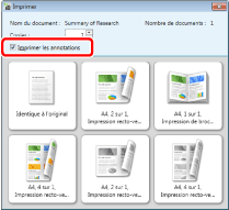 Les annotations ajoutées avec une autre application que Desktop Editor peuvent être imprimées que la case [Imprimer les annotations] soit cochée ou non, en fonction du type d'annotation.