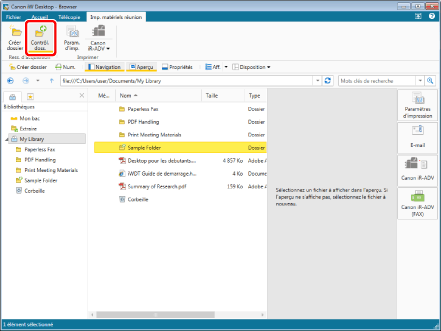 En cas de sélection d'une Bibliothèque Document Server ou d'une Bibliothèque SharePoint Server non connectée, ou d'un dossier dans une bibliothèque se trouvant sur un disque réseau nécessitant une identification, se connecter à la bibliothèque. Pour plus d'informations sur la connexion, voir la section suivante.