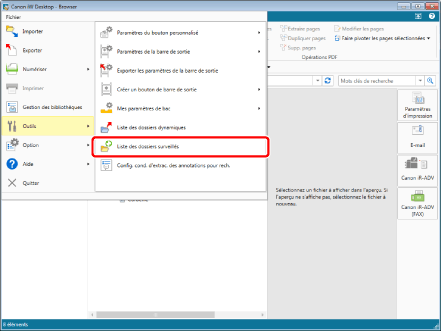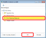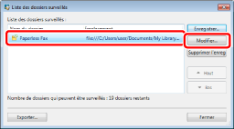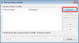 Vous pouvez également afficher la boîte de dialogue [Liste des dossiers surveillés], afin d'annuler les dossiers cibles de contrôle. Pour plus d'informations, consulter la section suivante.