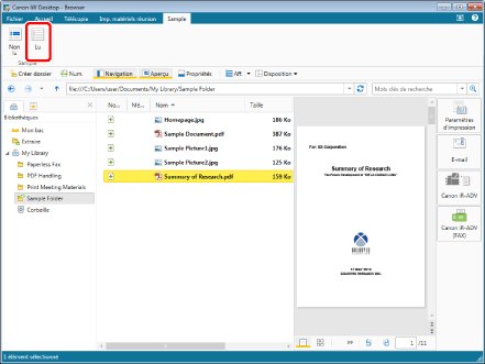 Si la case [Marquer automatiquement comme lus les documents non lus lors de leur affichage] est cochée, les documents non lus sont automatiquement considérés comme lus lorsque l'utilisateur les sollicite d'une manière ou d'une autre (aperçu, ouverture, impression, envoi par télécopie, création d'un courrier électronique, etc.).