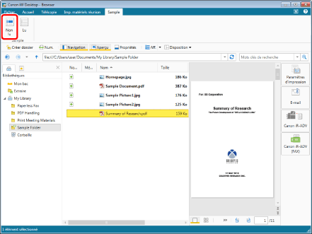 Si les commandes ne s'affichent pas sur le ruban de Desktop Browser, voir la section suivante pour savoir comment les afficher. Cette opération peut également être exécutée à l'aide des boutons d'outil sur la barre d'outils. Si les boutons d'outil ne s'affichent pas sur la barre d'outils de Desktop Browser, voir la section suivante pour savoir comment les afficher.