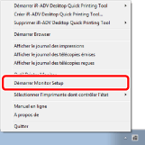 Lorsque Desktop Monitor Setup est en cours d'exécution, ne pas modifier les paramètres du périphérique depuis l'écran des propriétés de l'imprimante de Windows sinon il sera nécessaire de redémarrer Desktop Monitor Setup.