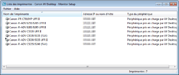 Lorsqu'une nouvelle imprimante est ajoutée ou que le port, l'adresse IP ou le nom d'hôte d'une imprimante est modifié, les informations sont mises à jour lorsque Desktop Monitor Setup redémarre.