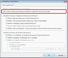 Si un périphérique ne peut pas être contrôlé, par exemple parce qu'il a été supprimé par un autre utilisateur, redémarrer Printer Monitor ou définir de nouveau [Sélectionner l'imprimante dont contrôler l'état].