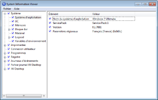 Permet d'afficher les éléments d'informations d'environnement récupérés par System Information Viewer dans une arborescence.