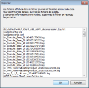 Permet d'enregistrer en tant que fichier texte et de collecter des fichiers journaux seulement pour les éléments dont les cases sont cochées dans la zone d'affichage des informations.